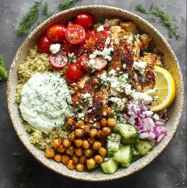 Quick and nutritious Greek Chicken Power Bowls filled with protein and vibrant flavors, perfect for busy weeknights.