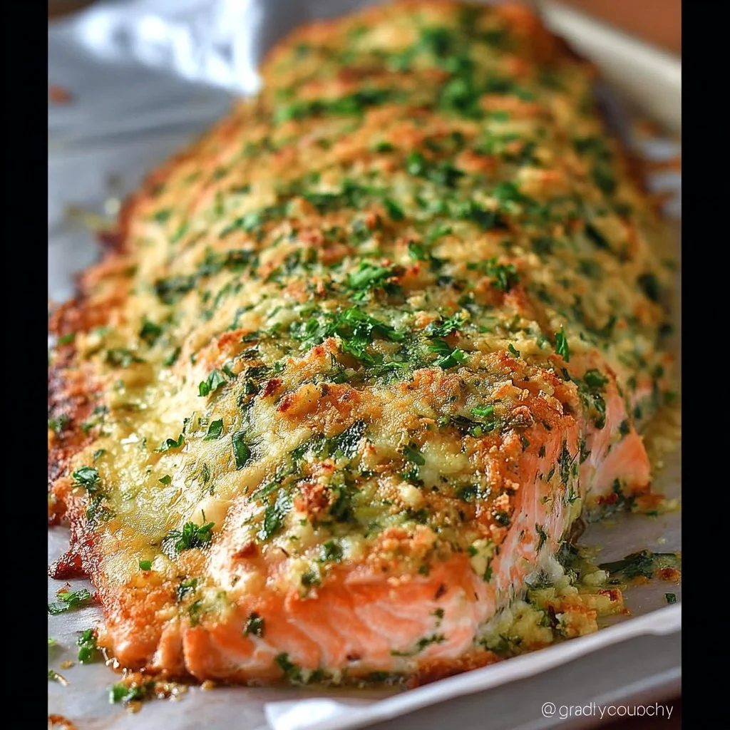A delicious and healthy baked salmon recipe with a crispy Parmesan herb crust, perfect for any occasion.
