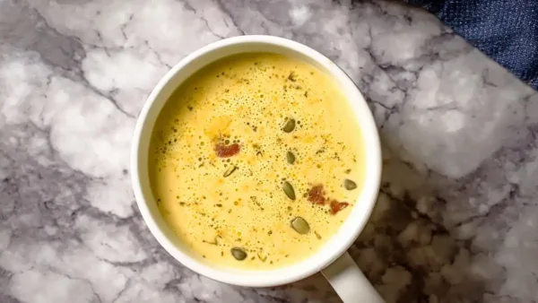 This cozy, protein-powered bowl combines sweet apples and sharp cheddar for a comforting and flavorful soup.