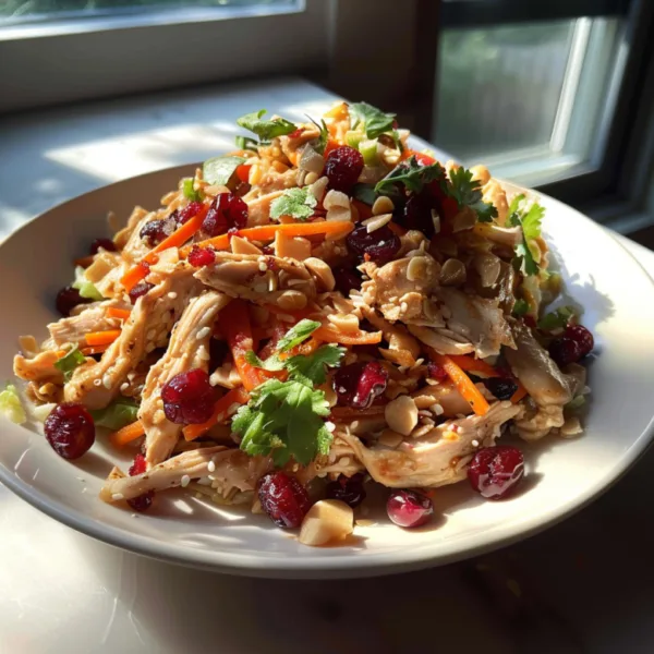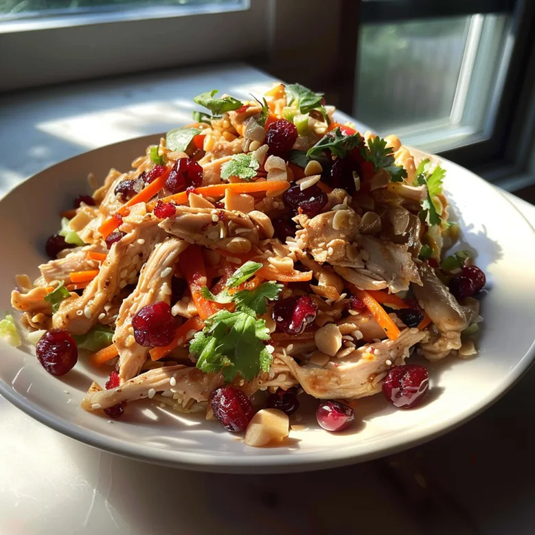 A vibrant, protein-packed salad combining tender chicken, sweet cranberries, crunchy vegetables, and a sesame-ginger dressing. Ready in 15 minutes and meal-prep friendly.