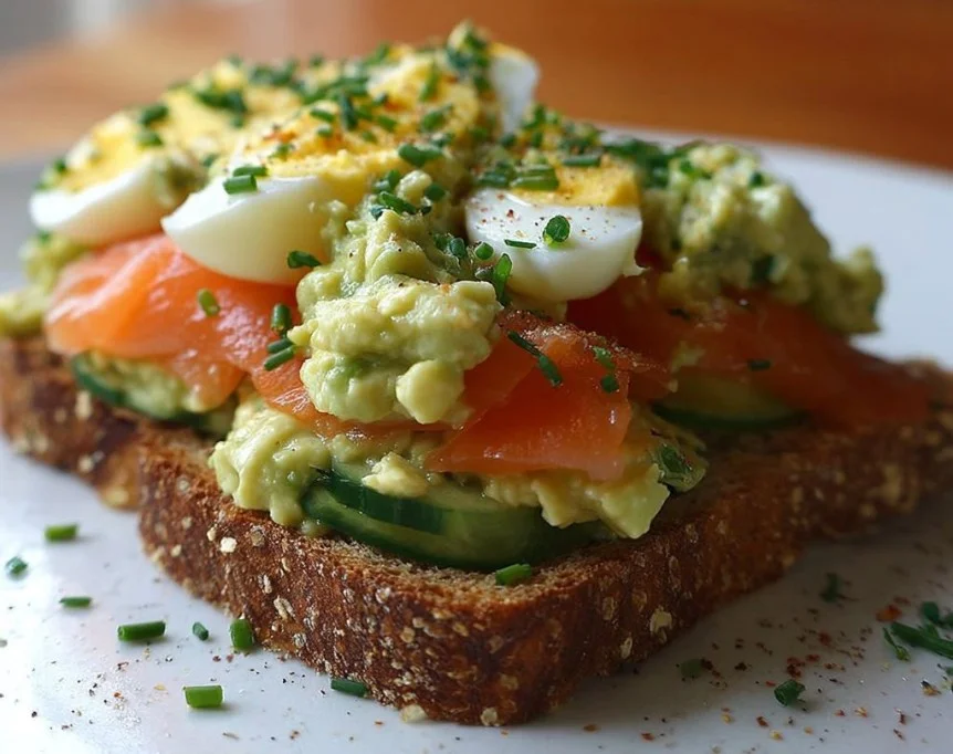 This quick and delightful sandwich combines creamy avocado with hard-boiled eggs and savory salmon, making it the perfect nutritious meal for busy days.