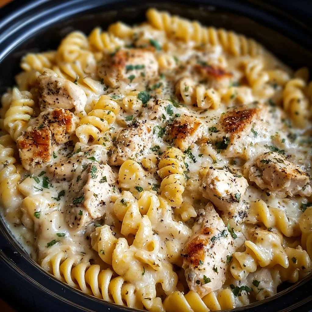 A delightful and creamy chicken pasta dish made effortlessly in a crockpot, perfect for family dinners.