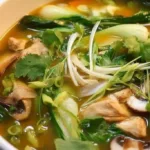 Bok Choy Chicken Soup is a stovetop chicken and vegetable broth, where cubed chicken simmers in stock and bok choy finishes bright and slightly crisp for a layered texture. I keep it in rotation because the broth turns silky while the carrots soften without losing bite, giving both comfort and quick weekday usefulness. For a noodle twist try ginger garlic noodle soup with bok choy.