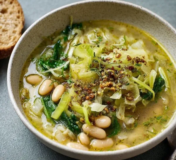 A comforting and nutritious soup made with cannellini beans and cabbage, perfect for chilly evenings.
