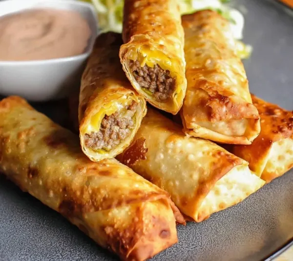1. Can I bake these Cheeseburger Spring Rolls instead of frying them? Absolutely! Arrange them on a baking sheet, spray with oil, and bake at 375°F for about 15-20 minutes or until golden and crispy.