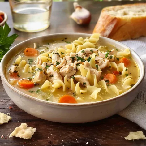 A comforting and classic chicken noodle soup recipe made with simple ingredients, perfect for a cozy meal. Easy to follow for delicious results.