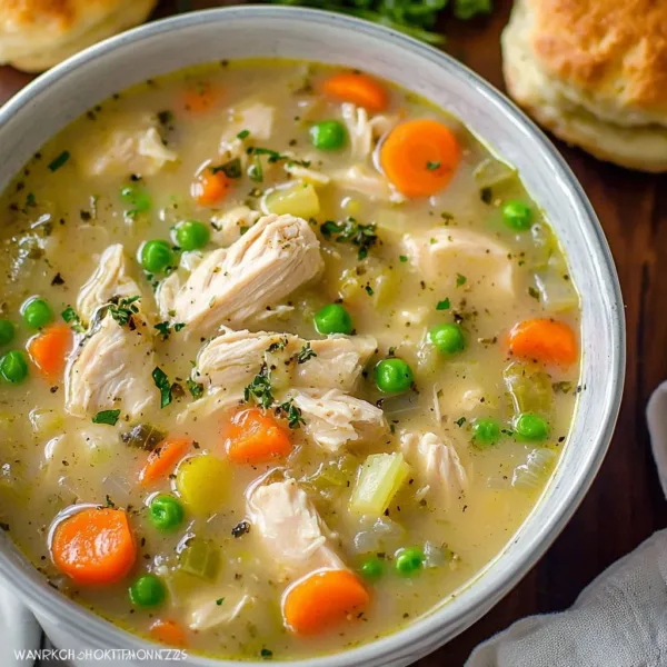 A creamy, stovetop chicken-and-vegetable soup that offers the comforting essence of chicken pot pie with tender chicken, potatoes, and a silky broth.