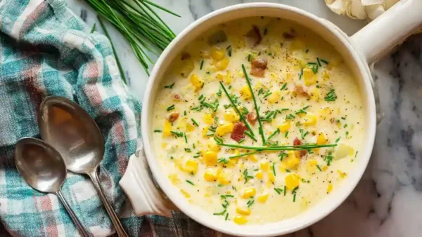A creamy and comforting corn chowder rich in protein, perfect for everyday family dinners.
