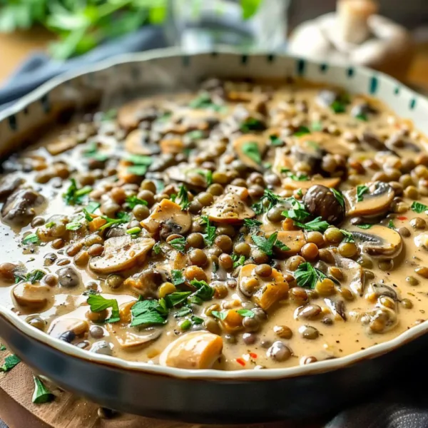 A hearty, plant-based stroganoff featuring green lentils and caramelized mushrooms in a creamy, tangy sauce. Comfort food that’s both satisfying and nutritious.