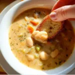 A creamy, plant-based soup made with butter beans, roasted garlic, and warm herbs, delivering a silky texture and balanced flavors.