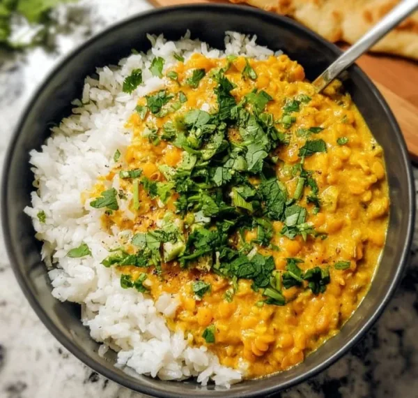 A warm and nourishing curry made with red lentils and coconut milk, full of flavor and packed with protein and fiber.