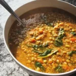 A comforting creamy lentil soup with coconut milk, packed with protein and fiber, perfect for winter evenings.