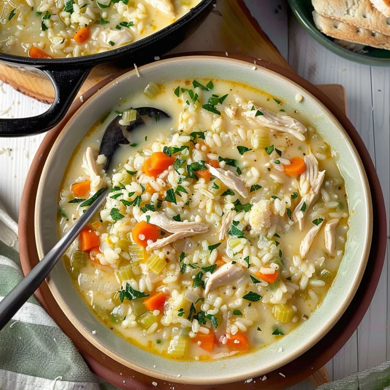 A comforting and flavorful Creamy Parmesan Chicken and Rice Soup recipe. Easy to make, perfect for weeknights, and packed with tender chicken, rice, vegetables, and a creamy Parmesan broth. Get the full recipe details here!