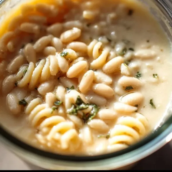 A creamy white bean sauce blended with garlic, lemon, and olive oil, perfect for pasta.