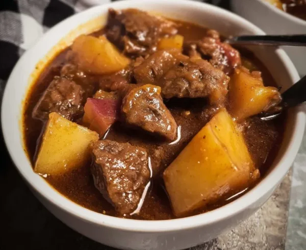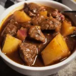 A hearty and comforting stew perfect for family meals, packed with tender beef and flavorful potatoes, all cooked slowly in a crock pot.