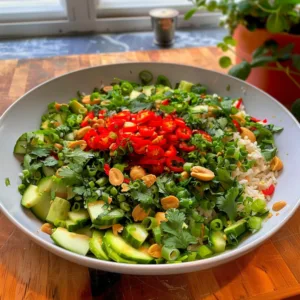 This salad’s appeal lies in its simplicity and freshness. The crispness of the cucumber, combined with the slight sweetness and vibrant color of the bell peppers, creates a delightful textural and visual experience. The light, tangy dressing ties it all together without overpowering the natural flavors of the vegetables.