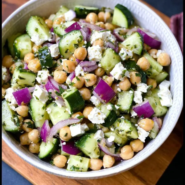 A refreshing salad bursting with flavor and nutrition, featuring chickpeas, cucumbers, and feta cheese.