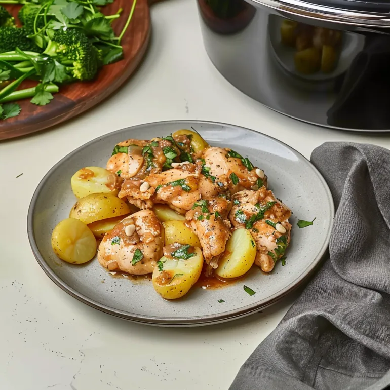 Tender chicken thighs and baby potatoes slow-cooked with garlic, parmesan cheese, and Italian herbs for a complete one-pot comfort meal.