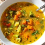 Last winter I aimed to make a cozy, tomato-free vegetable soup that my kid and I would both eat without bargaining, and it turned into a weeknight staple. This version packs seasonal sweetness from sweet potatoes and a creamy hit from plant milk while keeping it light, about 220 calories per serving and a floral aroma of thyme as it simmers. If you like anti-inflammatory recipes with bold, homey flavors, see this anti-inflammatory vegetable soup with turmeric for a bright cousin of this bowl. One spoon and you’ll know why it’s so easy to make on repeat.