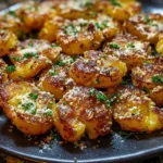 Crispy Garlic Butter Parmesan Smashed Potatoes start with potatoes being hit with hot butter and roasting until the edges turn deeply golden and crispy. Garlic and Parmesan settle into the surface, creating a salty crust with a soft center. It’s a fast, family-friendly side I keep in steady rotation because the texture holds up and the flavor carries the plate.