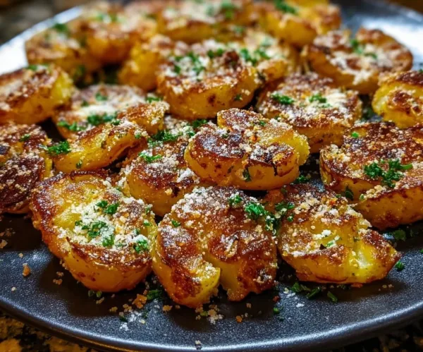 Crispy Garlic Butter Parmesan Smashed Potatoes