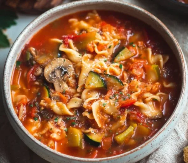 Short health insight: This soup delivers a good balance of vegetables and pantry staples, offering fiber and sustained energy without heavy saturated fat. It’s an easy base to boost protein or reduce carbs depending on your goals.