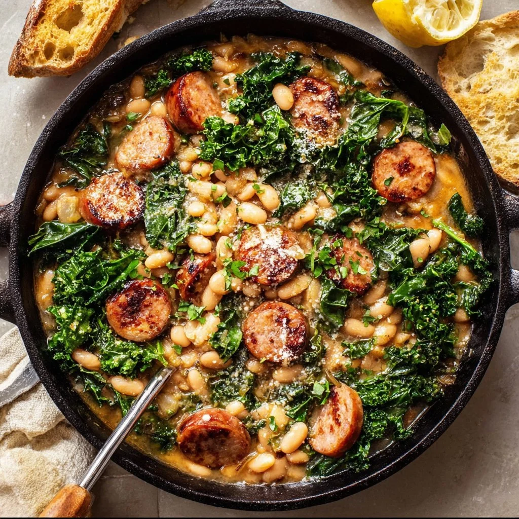 Think of this as a flavor skeleton you can rely on, sturdy enough to change with what you have. Sausage, white beans, a little broth, and greens build layers of texture and taste that hold up to improvisation, while still coming together quickly. Expect a dish that is both homey and bright, ready before you know it.