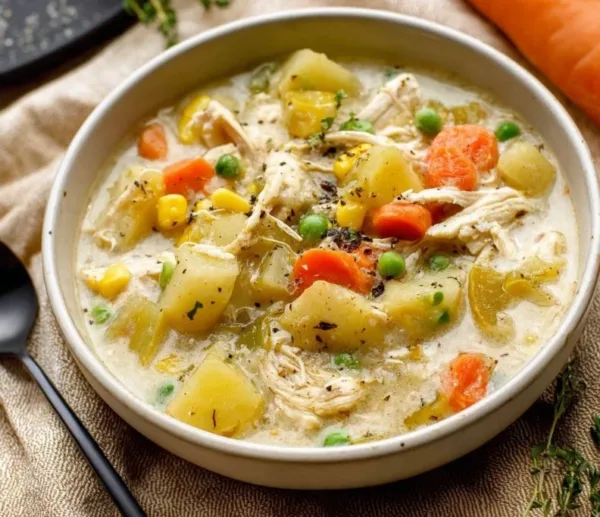 Gluten-Free Chicken Pot Pie Soup with Greek Yogurt