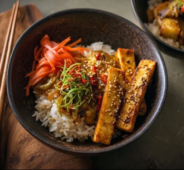 How can I make this rice bowl vegetarian-friendly? This recipe is already vegetarian, thanks to the tofu! To make it vegan, ensure you use plant-based soy sauce and miso paste.