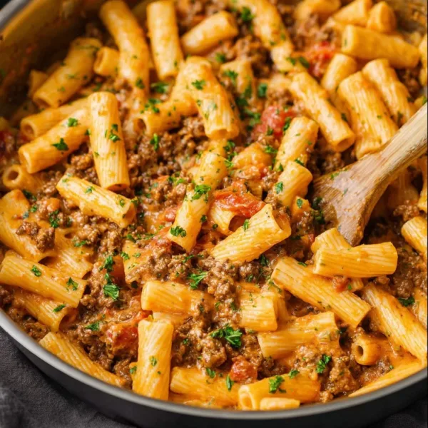 A comforting and flavorful pasta dish featuring a creamy sauce with Rotel tomatoes, ground beef, and spices, perfect for busy weeknights.