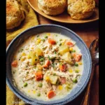 A warm and comforting Chicken Pot Pie Soup, perfect for chilly days, loaded with tender chicken, creamy broth, and fresh vegetables.