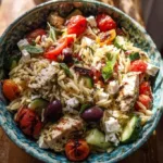 Mediterranean Chicken Orzo Salad with vibrant vegetables and herbs