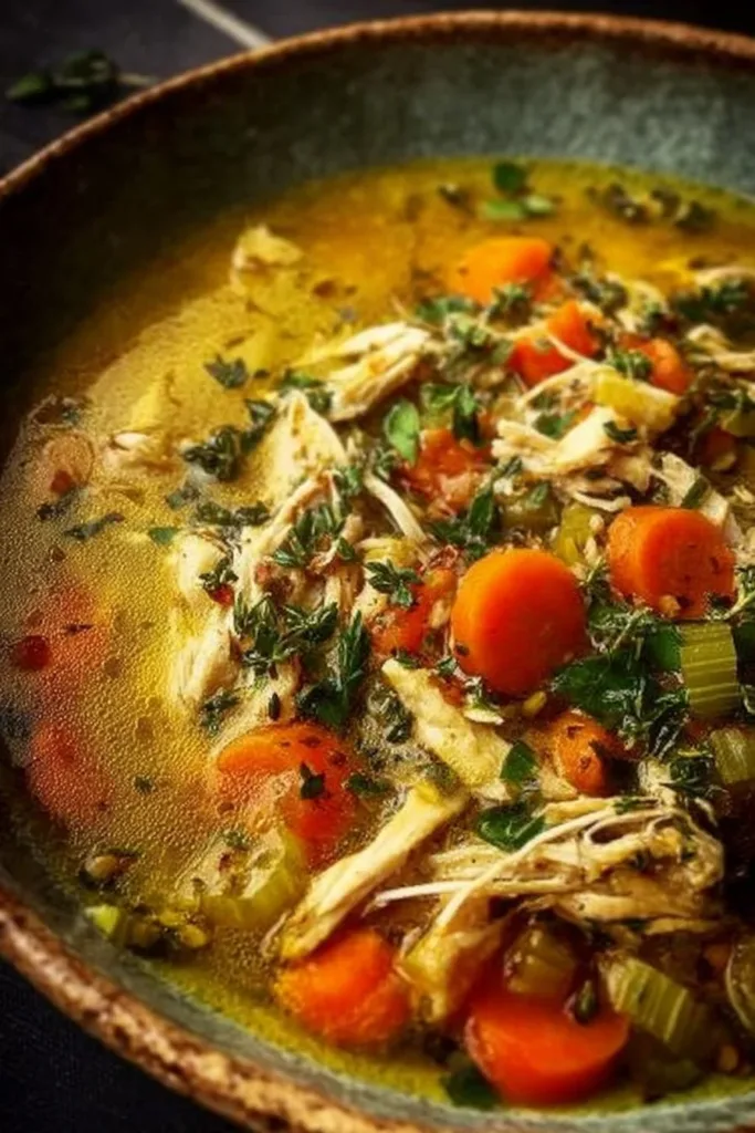 A bright and slightly smoky chicken soup with tender chicken and soft vegetables, perfect for a weeknight meal.