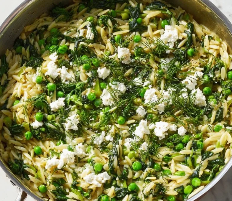 Think of this as a fast, one-skillet dinner that behaves like a composed side and a whole meal at once. The technique is simple: build flavor in the pan with scallions and garlic, wilt the spinach, simmer the orzo in stock so it absorbs flavor, then fold in bright ingredients at the end. The tone here is practical: you will move quickly, but you are in control, and the payoff is a creamy, herby, lemony dish that still feels light.