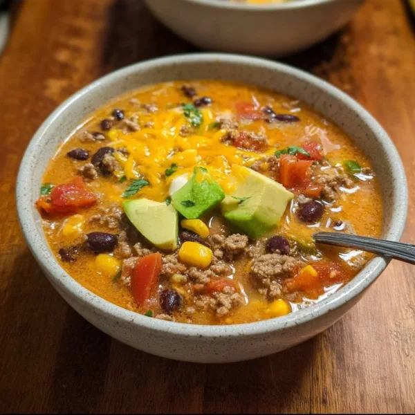 A serving of this Creamy Beef Taco Soup (approximately 1.5 cups) contains around 350 calories, 24 grams of protein, 40 grams of carbohydrates, 12 grams of fat, and 8 grams of dietary fiber. With a balanced mix of macro and micronutrients, this soup not only tastes fantastic but supports a nutritious diet. Pair it with a fresh salad for a complete meal rich in vitamins and minerals.
