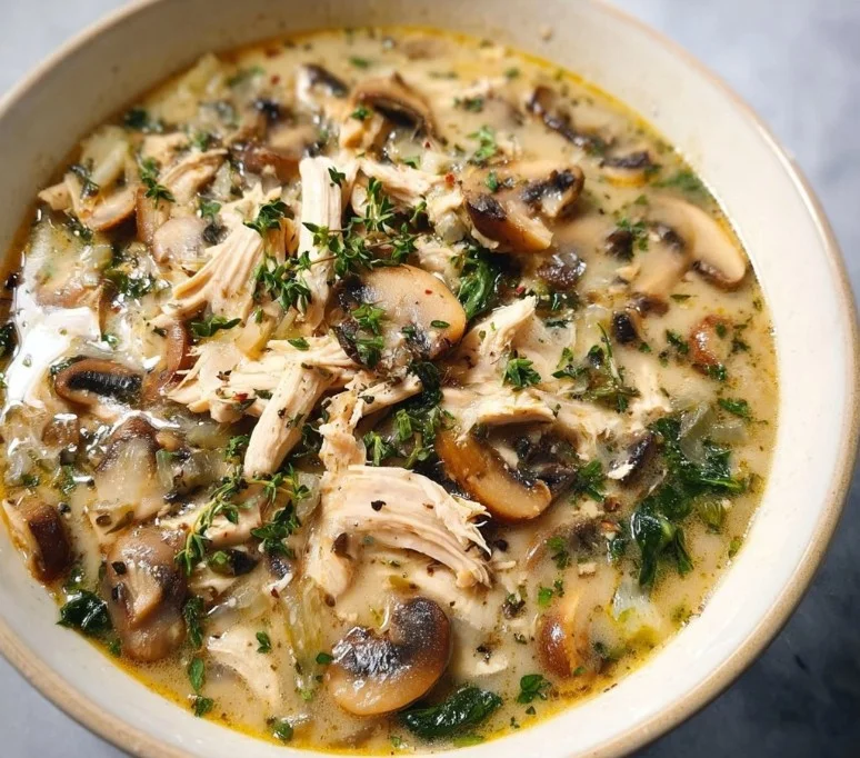 One serving of this delightful soup—approximately 1.5 cups—contains about 400 calories, 25g of protein, 20g of carbohydrates, 25g of fat, and 5g of dietary fiber. It’s loaded with essential vitamins from the mushrooms and spinach, making it not just delicious but also nutritious. For a heart-hearty immuno-boosting bowl, look no further than this comforting recipe.