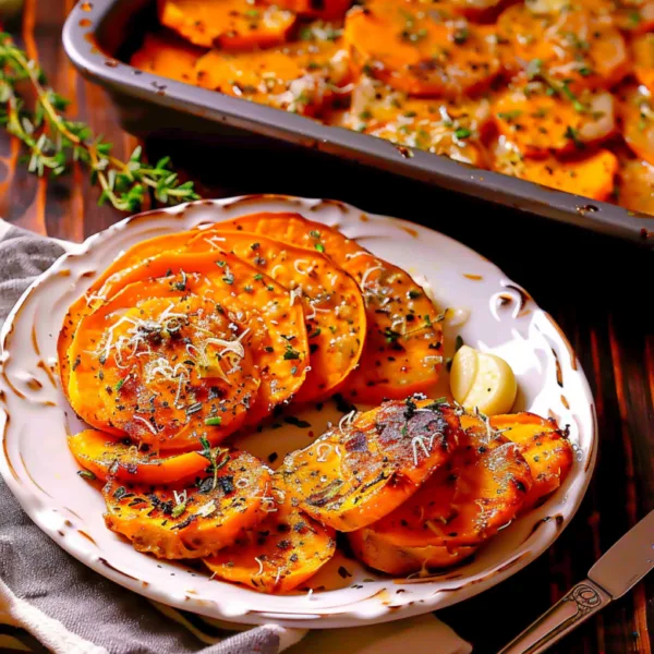 Crispy-edged sweet potatoes roasted with aromatic garlic and nutty Parmesan cheese. A simple side dish that transforms basic ingredients into restaurant-quality results.