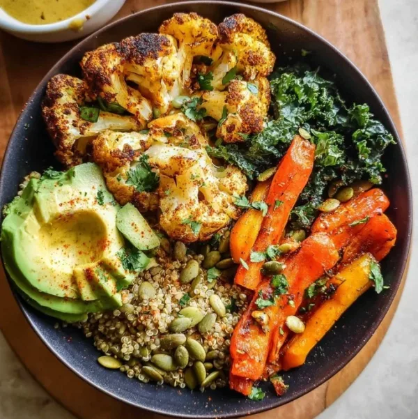 A colorful and nourishing dish packed with roasted vegetables and quinoa, perfect for a busy weeknight dinner.