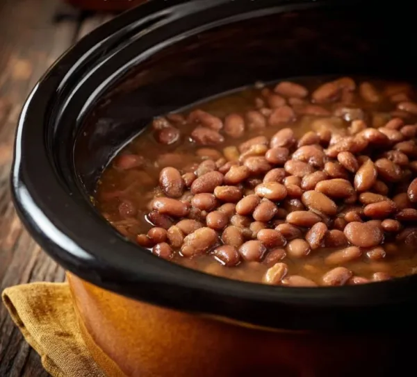 Tender pinto beans cooked in a slow cooker with simple seasoning, resulting in creamy beans perfect for various meals.
