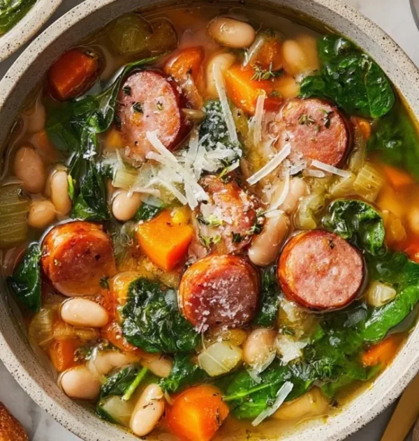 A comforting slow cooker soup made with andouille sausage, spinach, and Great Northern beans. Perfect for busy weeknights and packed with protein and fiber.