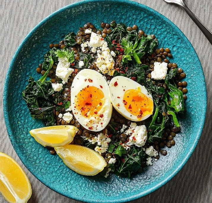 A quick, nutritious, and flavorful meal featuring lentils, vibrant greens, and creamy feta.