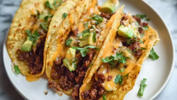Imagine coming home after a long day, your stomach rumbling in anticipation of a tasty meal. That’s what these tacos deliver , warm tortillas filled with seasoned beef, drizzled with a garlicky honey BBQ sauce, and topped with your favorite fixings. Cooking together as a family or treating yourself on a cozy night in, these tacos are sure to hit the spot.