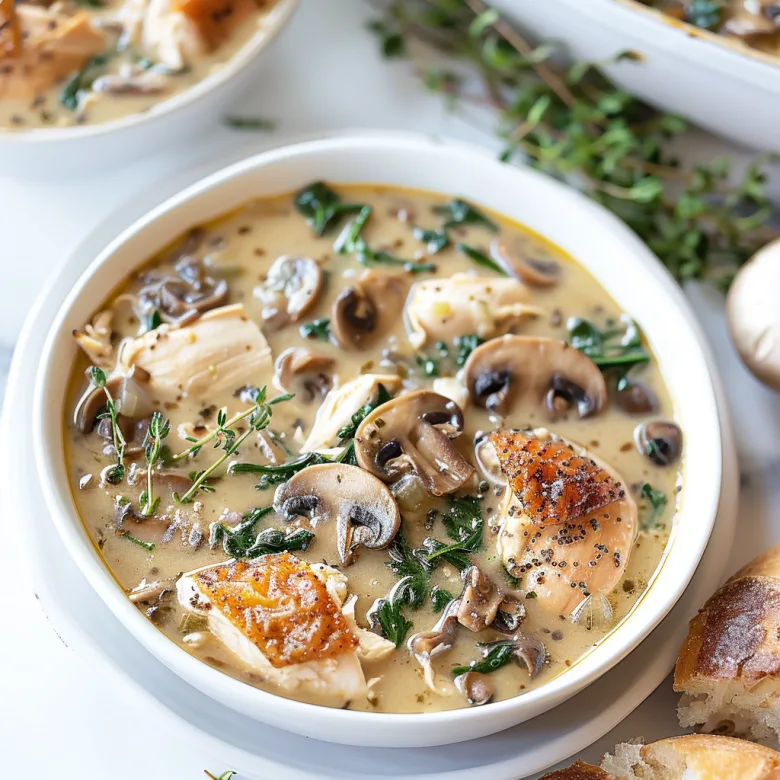 A comforting autumn soup made with tender rotisserie chicken, earthy mushrooms, and fresh herbs in a rich, warming broth. Ready in under an hour but tastes like it simmered all day.
