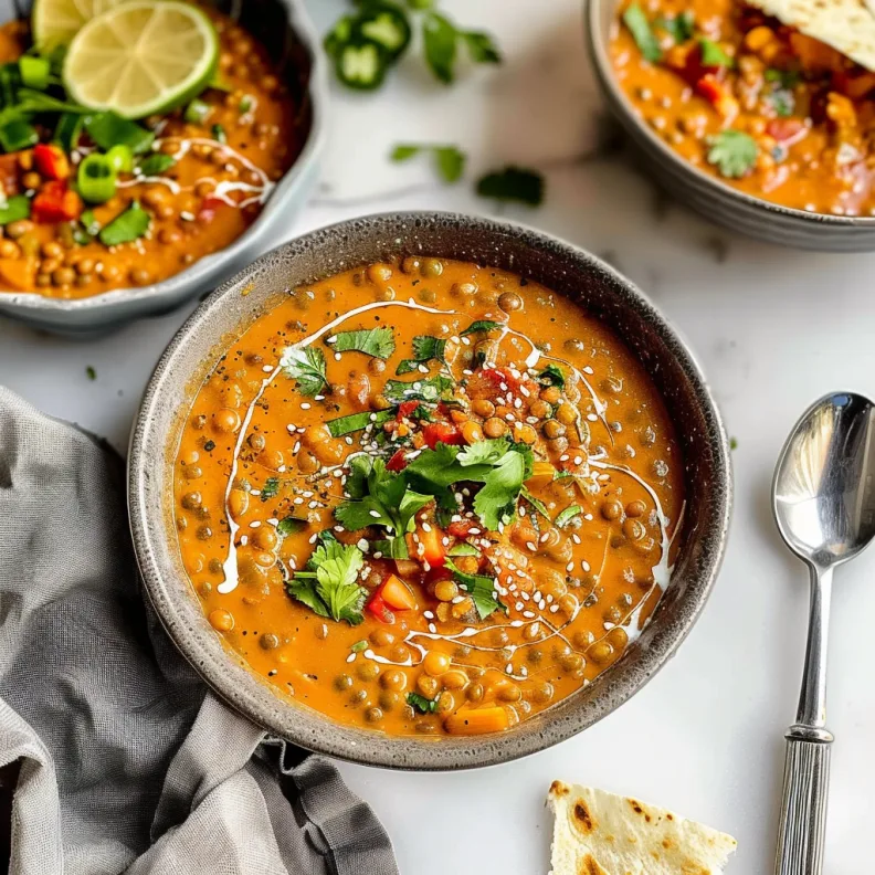 A hearty and flavorful vegan soup featuring red lentils, black beans, and traditional Mexican spices. This protein-rich soup is naturally thick and satisfying.